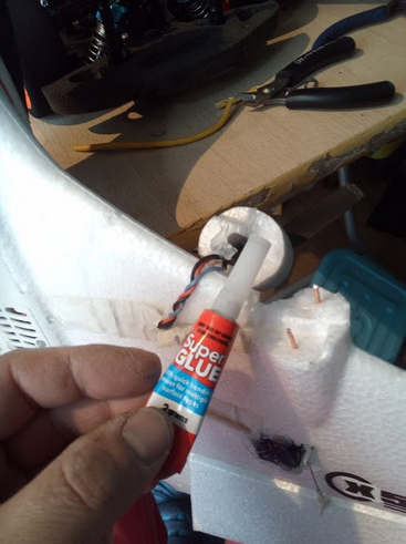 Super glue is then applied.