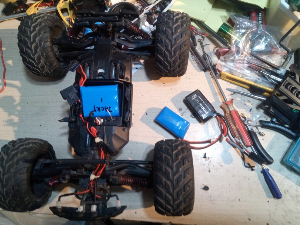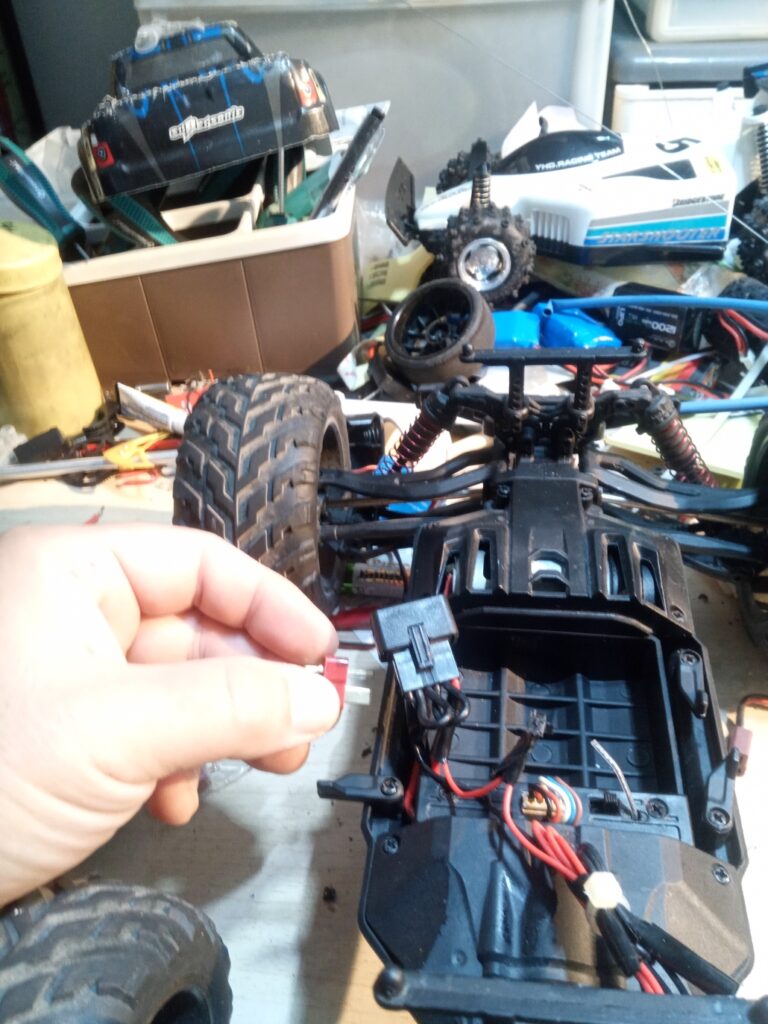 The SM connector plug has different variations, which are all intended for small drones and toys. I replace this plug with a deans plug. Soldering is required and the soldered wires are protected with heat tube. I use a small 20C 7.4V Lipo pack instead of the 9.6V pack that comes with the car.