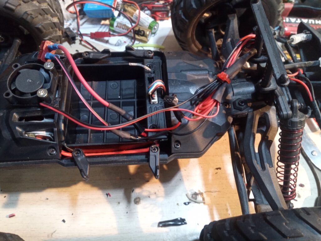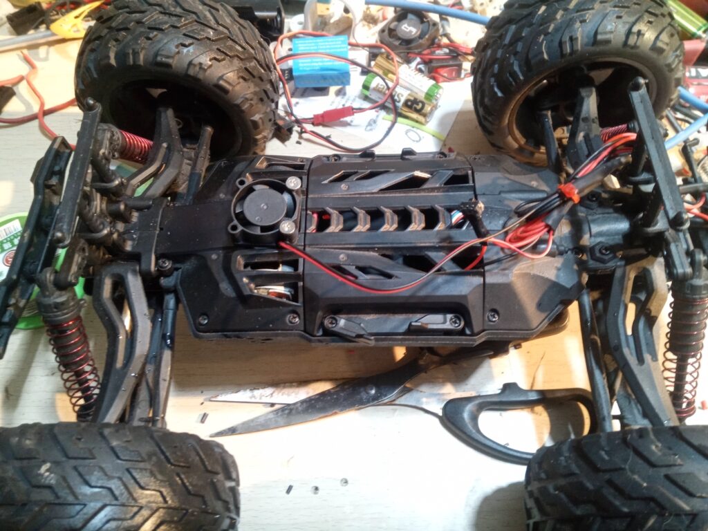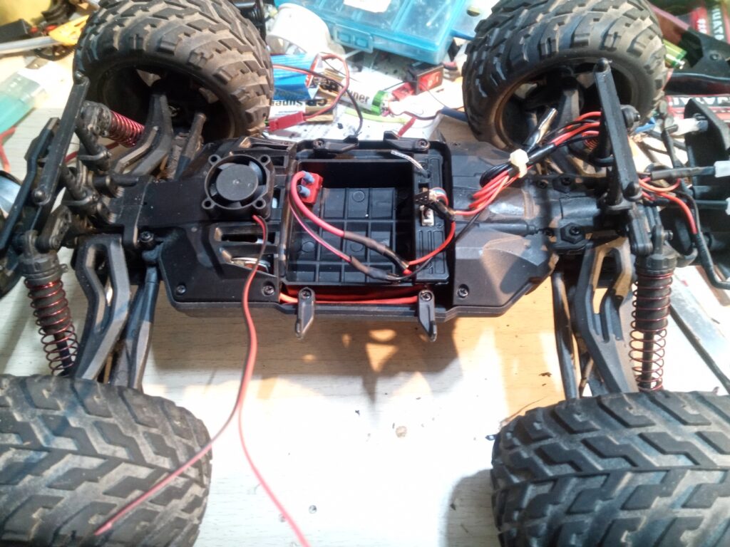 I optionally branch out wires for a 20mm cooling fan mounted directly on top of the motor. So far the car runs great on grassland!