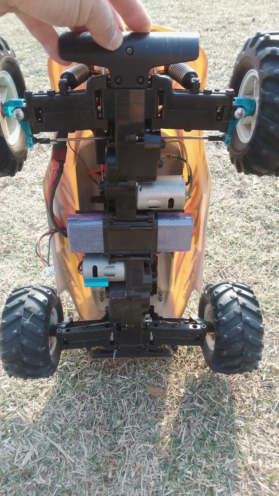In a traditional 4WD RC car, a single motor sends power through a central drivetrain, usually with a driveshaft splitting torque between front and rear differentials. In a dual-motor setup, each axle gets its own motor—one driving the front wheels, and one driving the rear. These are typically wired in parallel to the same ESC (Electronic Speed Controller) or in some cases, to separate ESCs for independent control.