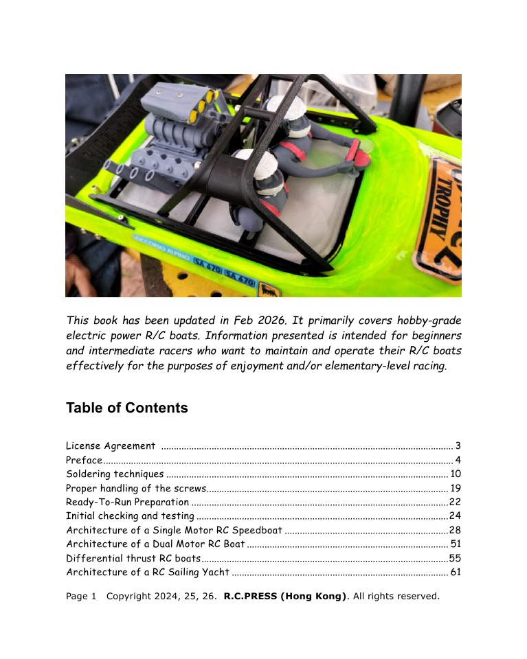This is not a beginner’s guide to buying your first toy-grade speedboat. This book is a workshop companion for the dedicated builder, the weekend racer, and the scale enthusiast who knows that victory—or a perfect day on the pond—is won in the pits. The year 2026 brings a new generation of challenges and opportunities: smarter ESCs with real-time telemetry, high-voltage lithium chemistries that demand respect, 3D-printed replacement parts, and self-righting systems that are both a miracle and a maintenance headache.