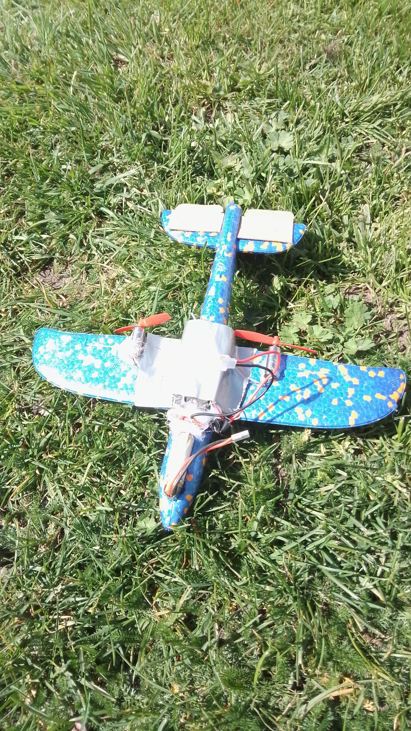 This is an experiment for fun – 1S power differential thrust electronics on a tiny hand thrown glider to produce a small but flyable RCglider (to be precise, a small but overpowered differential thrust plane).