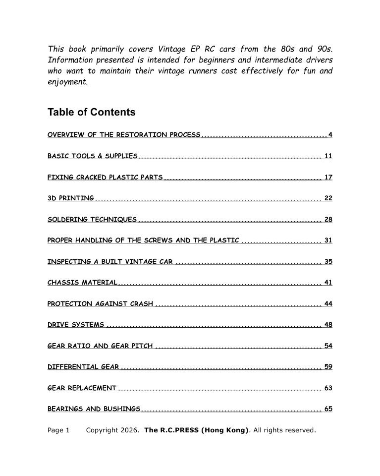 Practical Vintage RC Cars Restoration & Maintenance 2026 is not a glossy coffee-table tribute to the classics (though we love those too). It is a workshop manual for the present day. Inside these pages, you will find no vague encouragement to “use period-correct parts” when those parts no longer exist. Instead, you will learn: