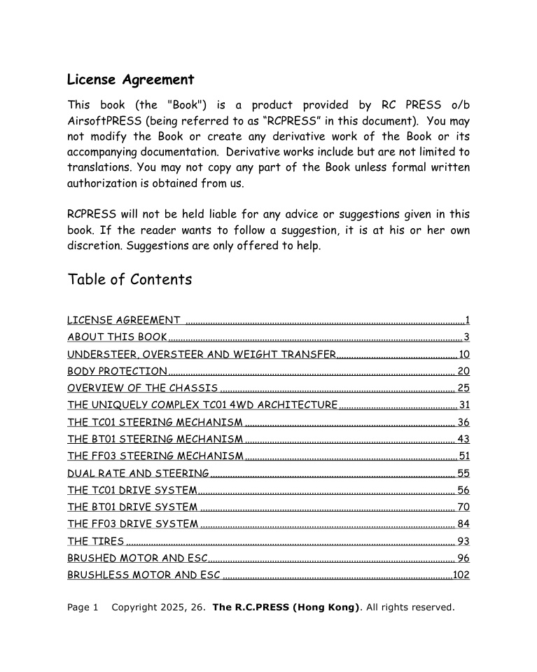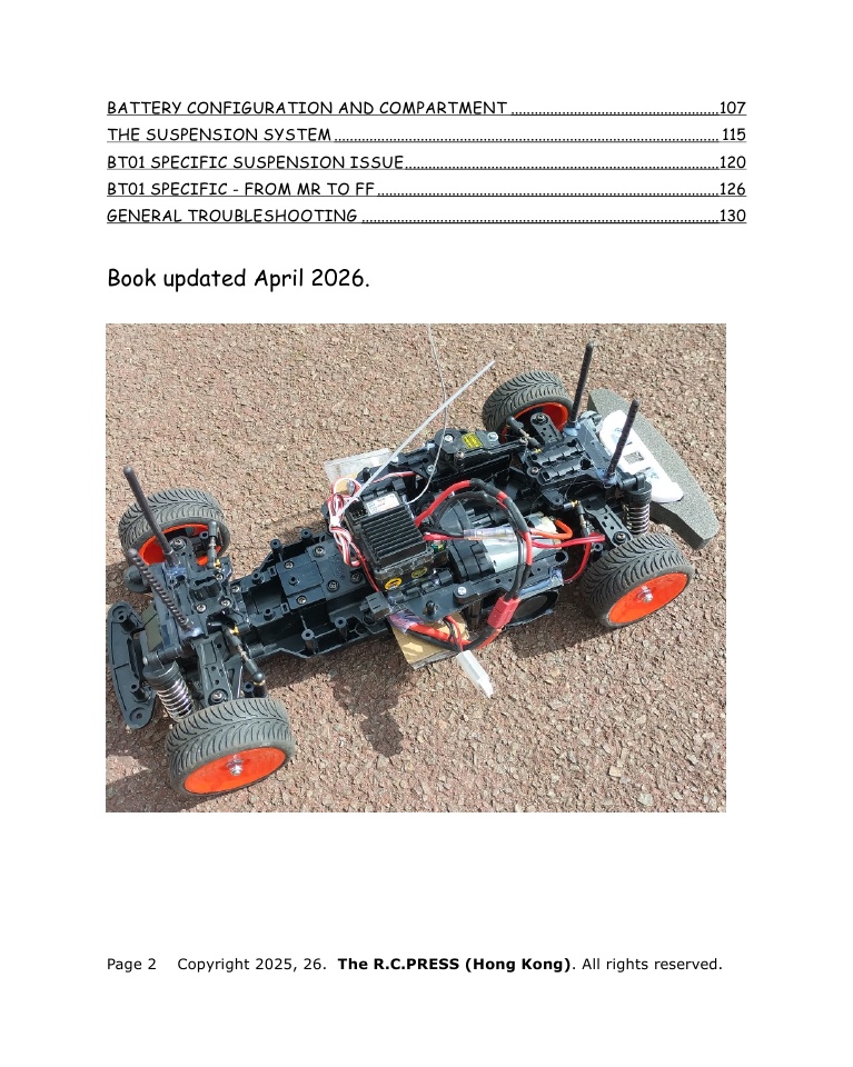 Whether you’re a club racer hunting for tenths of a second, a weekend basher who wants reliability, or a builder who simply enjoys the craft, this book is for you. No fluff. No obsolete hacks. Just proven, practical knowledge for keeping your TC01, BT01, or FF03 at the sharp end of the pack.