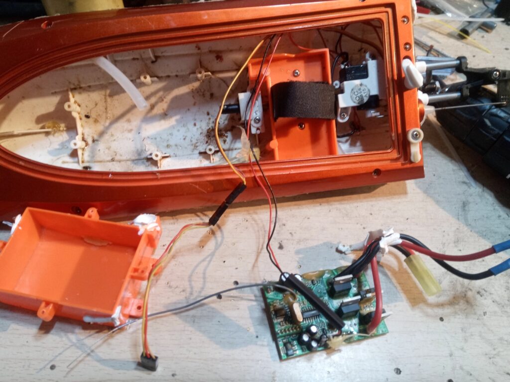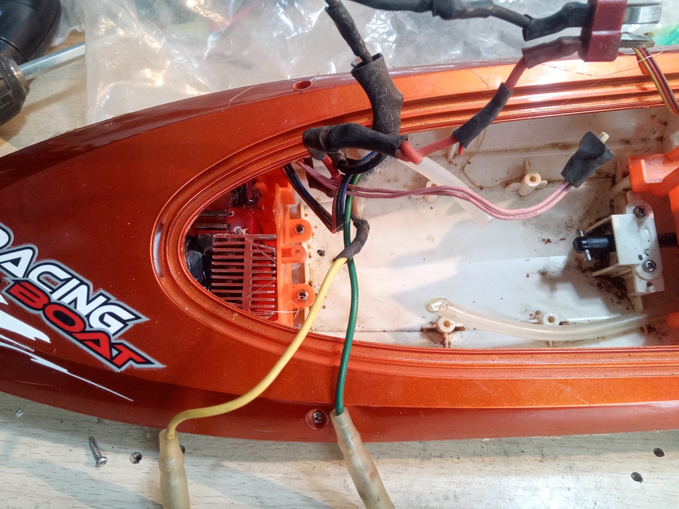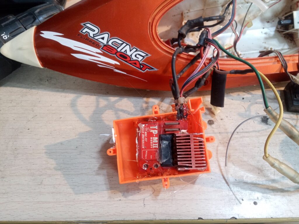 Instead of buying an original replacement, you can actually use the receiver box to hold a regular ESC. The boat itself is pretty water tight so I don’t really worry about the issue of water proofing. If the receiver box is not big enough for both the ESC and the receiver, you can 3 d print a small receiver mount and hold the receiver somewhere else. You may use hot glue to seal around the connections just in case water does accidentally leak in.