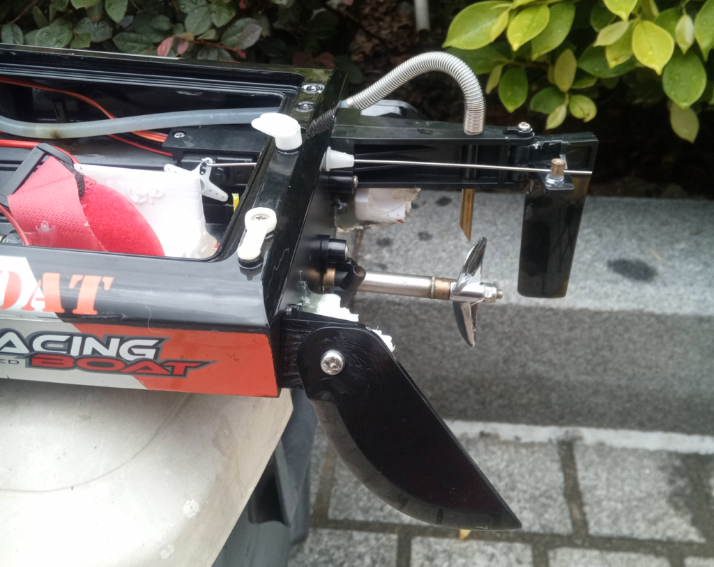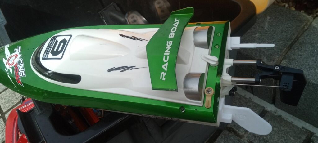 What is shown in this video is a FT010 with a pair of plastic shark fins installed. With such an upgrade the boat has a more stable straight line performance, and no more sudden sharp turn. Turning is not as easy as before though.