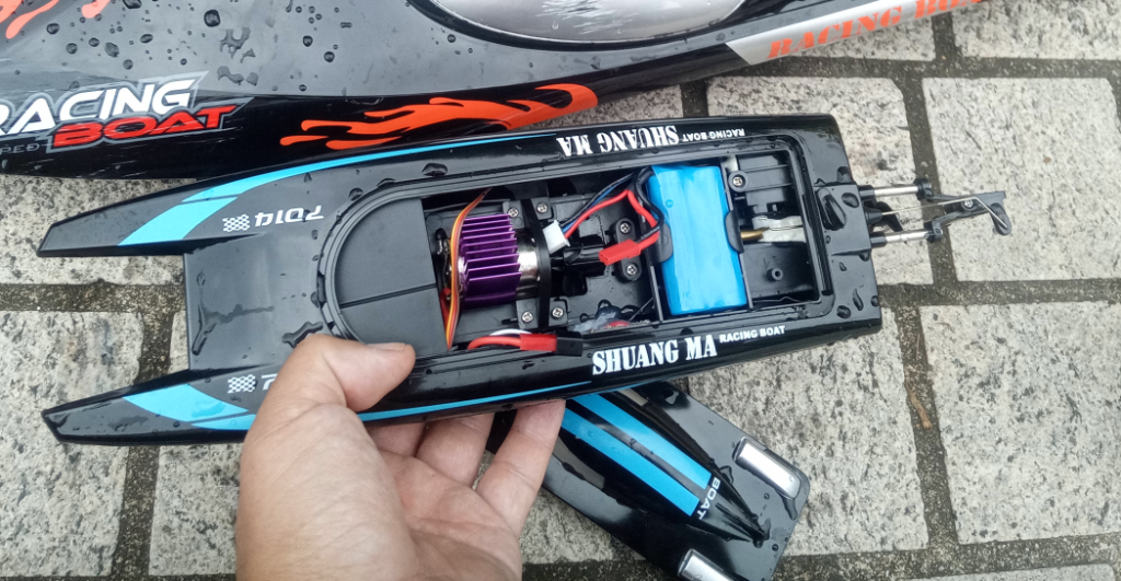 Smaller scale RC boats that use 370 motor are usually without water cooling. Instead there is a cooling fan attached to the main shaft. These boats are pretty fast, but due to a small compartment heat can become a problem.