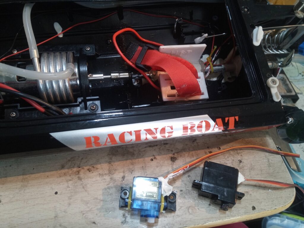 RTR boats often come with a low cost servo that is either too small or too unique. To make sure steering is reliable, you will want to use a standard size servo that is powerful enough to manipulate the rudder. In this video a FT 0 10 is shown. It has a uniquely sized servo that is quite fragile but is expensive to replace. Even though a smaller servo can fit in easily, it just doesn’t have the torque to turn the large rudder.