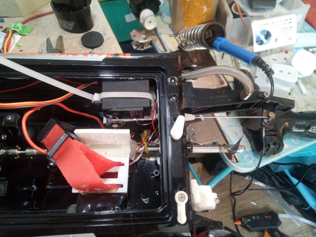 The stock servo mount is not big enough for a standard servo. To use one, you must install a new DIY servo mount. Then you must use hot glue, double sided tape and zip tie to tighten the servo.