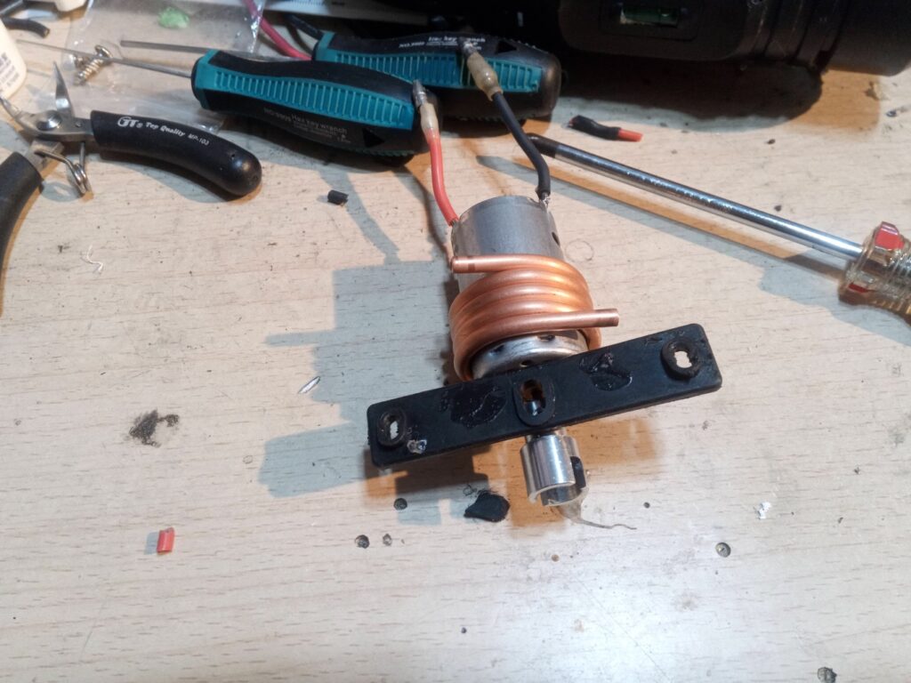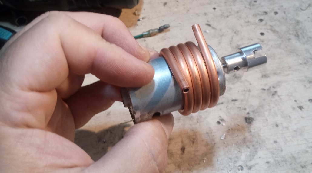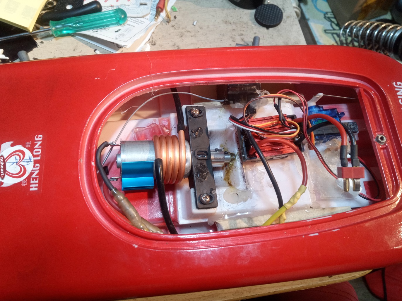 For motor cooling of RC boat, using copper coil may be a better option if water inflow is not always consistent due to shallow water or insufficient speed. Copper itself is a metal that can dissipate some heat even with insufficient water passing through it. And it is less likely leaking water.