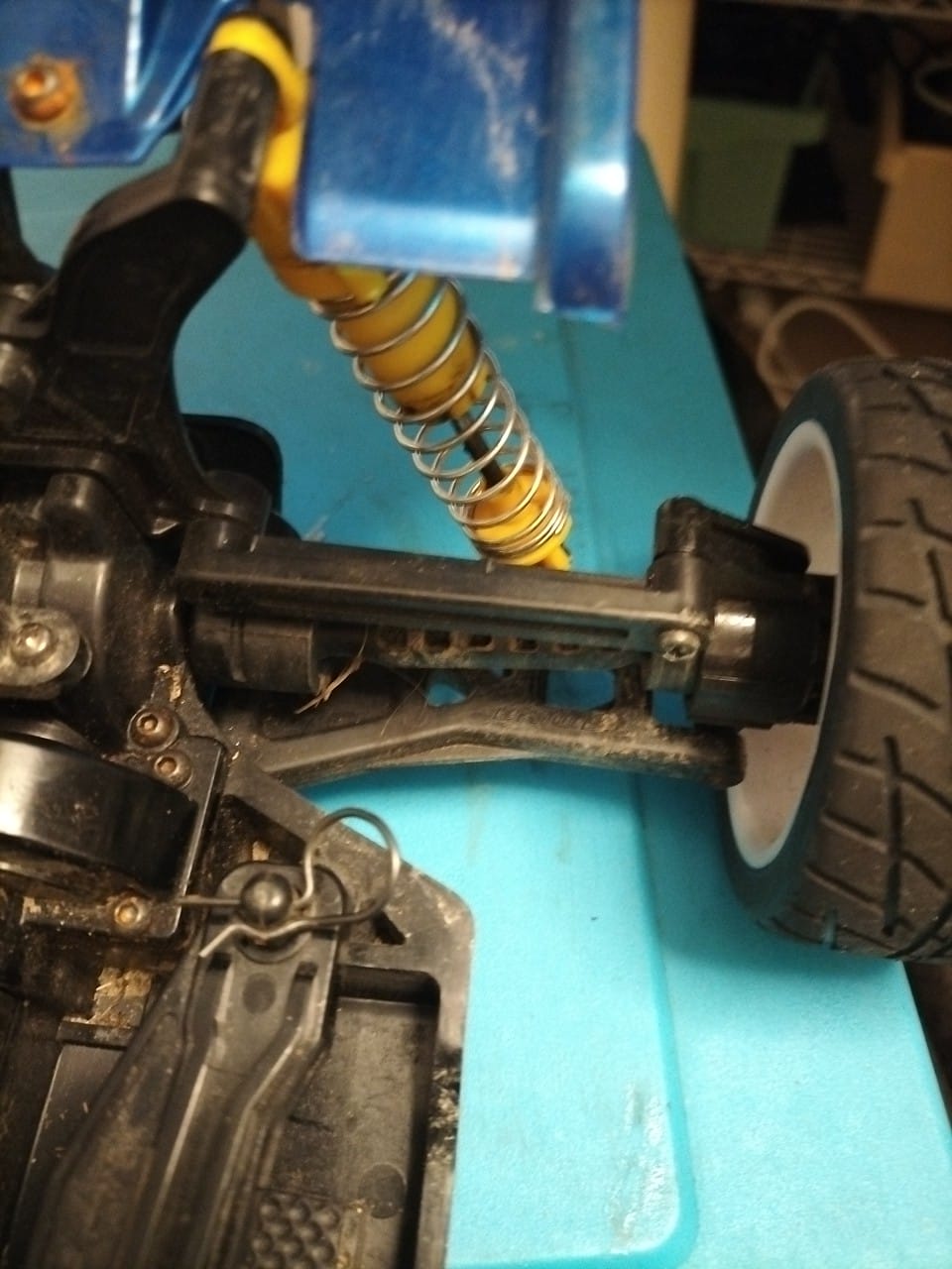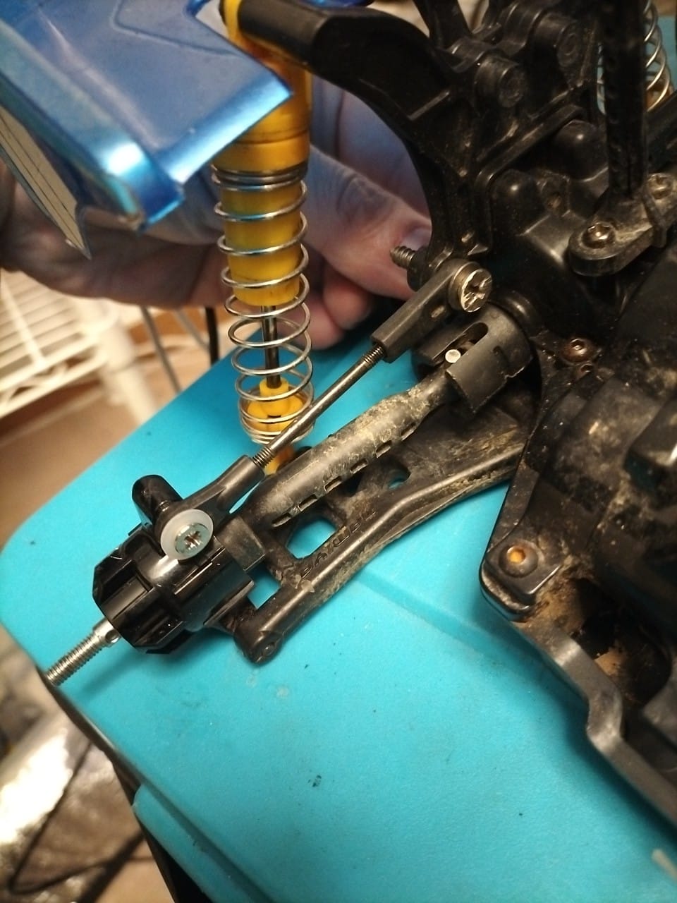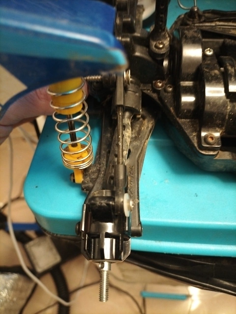 The lower mounting point of the TT01 upright needs to be filed a little bit (so to make it 1mm thinner).